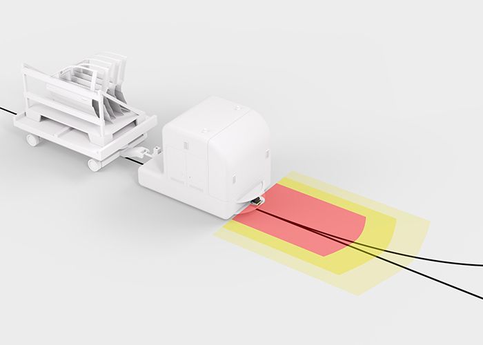 Cu câmpul lor de protecție configurabil, scanerele laser de siguranță RSL 210 sunt capabile să monitorizeze prezența persoanelor chiar și în zone ascunse.